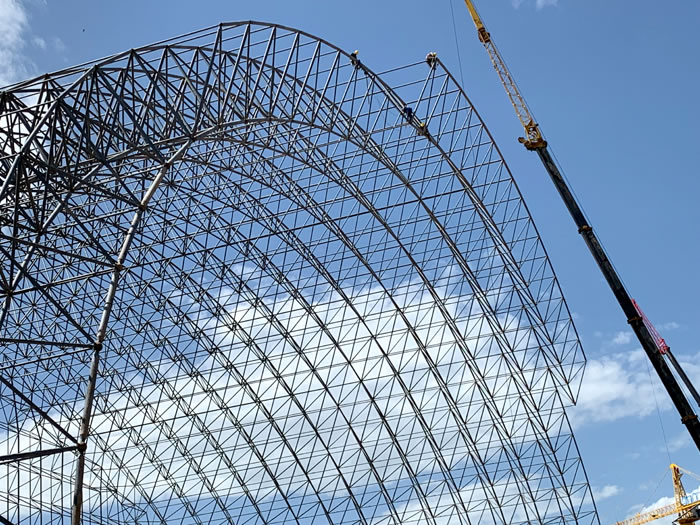 (2)网架加工前应对现场尺寸进行复测,确认无误后方可进行加工、安装;网架制作、运输、安装应遵守《空间网格结构技术规程》JGJ7-2010、《钢网架渭南螺栓球节点》JG/T 10-2009、《钢网架渭南螺栓球节点用高强度螺栓》 GB/T 16939-2016、《渭南钢结构渭南工程渭南施工规范》 GB50755-2012、《渭南钢结构渭南工程渭南施工质量验收标准》 GB50205-2020。